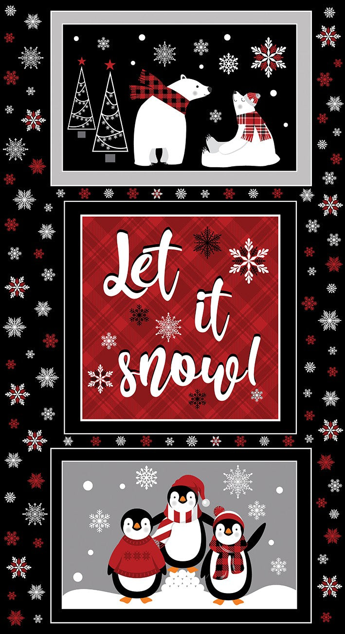 Winter Comfort Flannel Black Snowy Panel by KANVAS for Benartex 12761FB-12