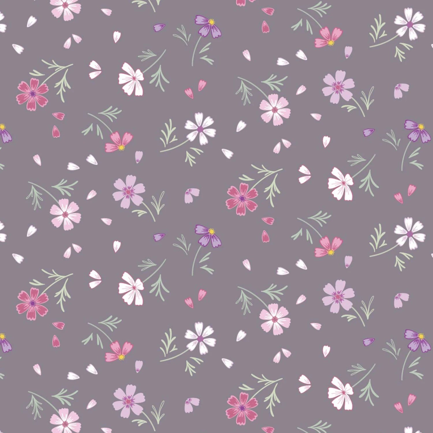 Pressed Flowers Floral Affections Light Charcoal Gray by Cassandra Connolly for Lewis and Irene CC53-3