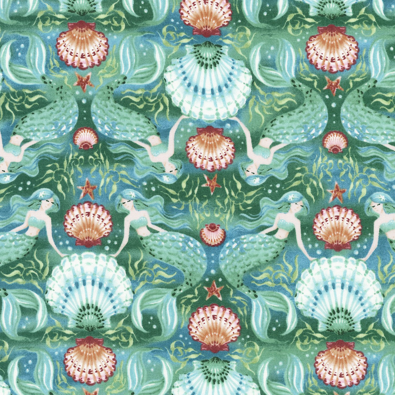 Sunset Coast Mermaids Teal by Robert Kaufman WEL20023213