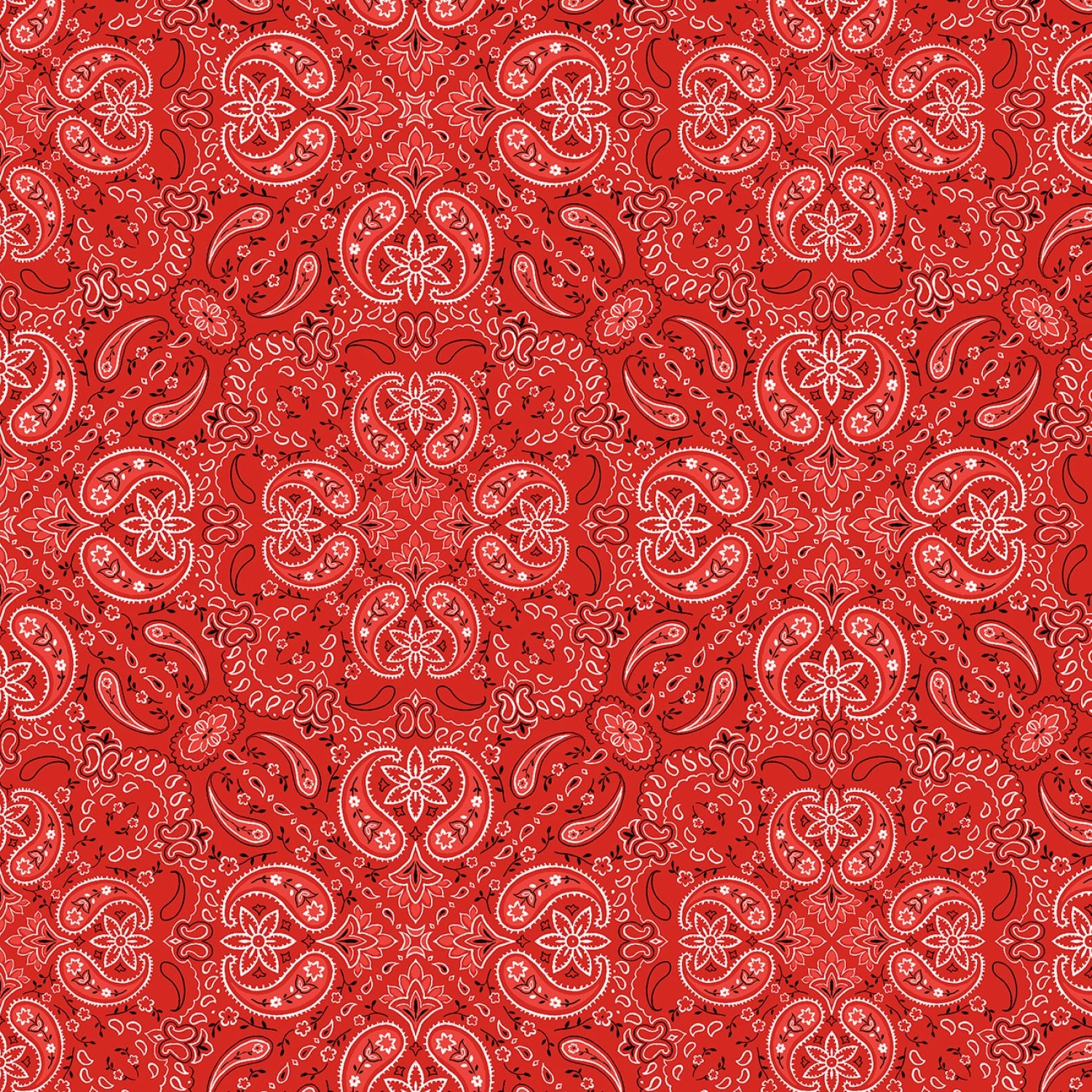 This fabric features a classic paisley design in a striking red hue, with intricate white paisley motifs interwoven with floral elements..