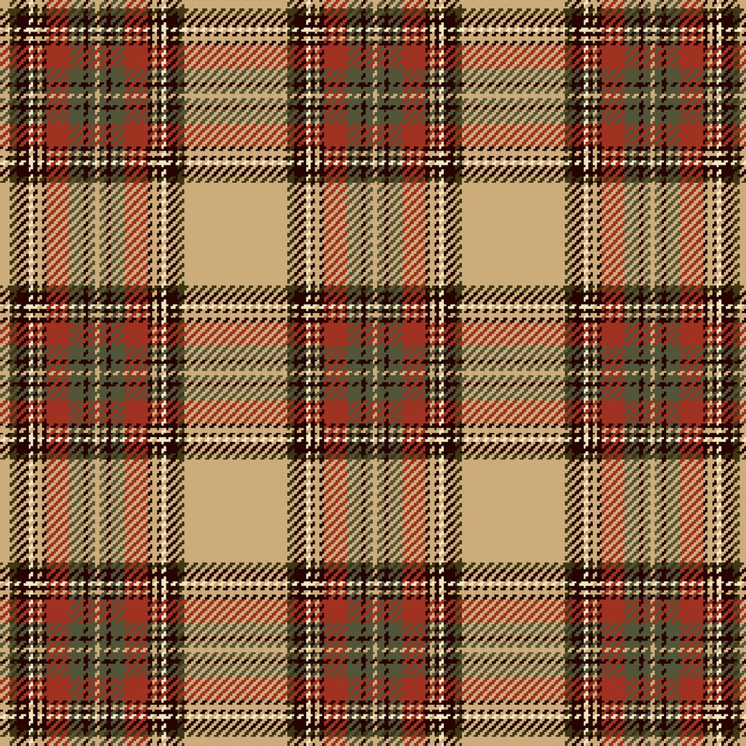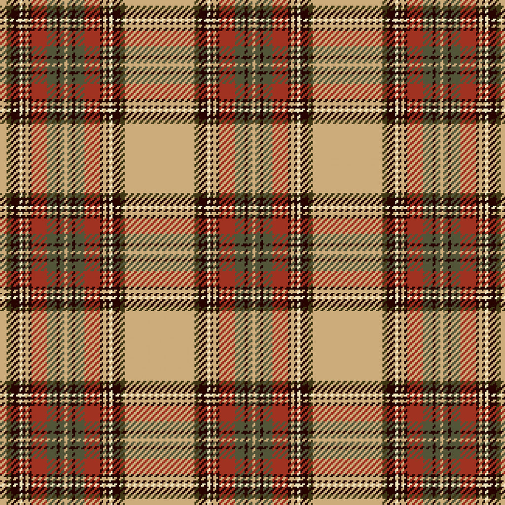 This flannel fabric features a classic plaid design with a warm, inviting color palette of camel, red, green, and brown.
