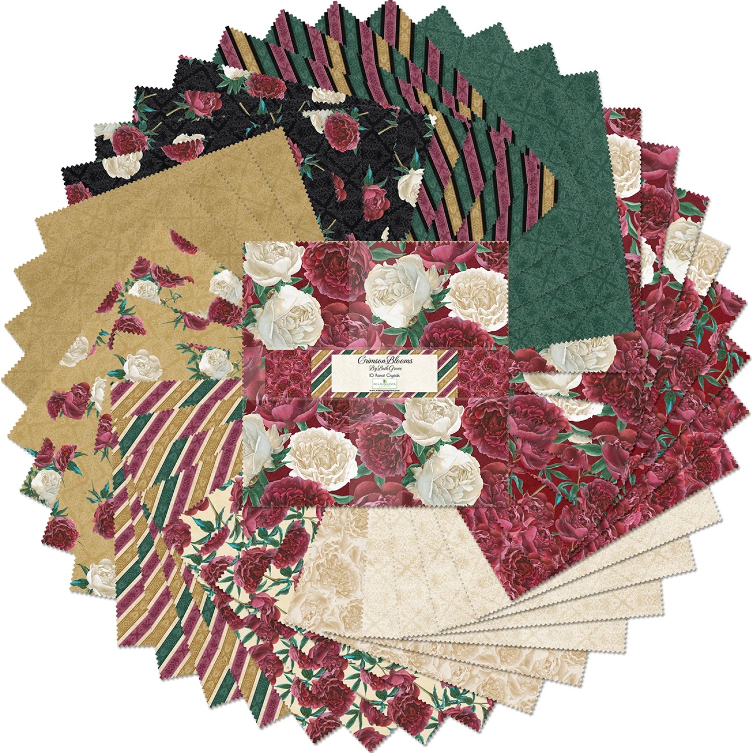 Crimson Blooms Layer Cake Precut 10-inch Squares by Beth Grove for Wilmington Prints Q518-865-518